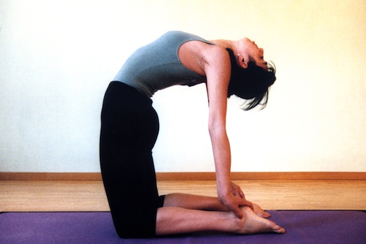 Appoggiate le ginocchia a terra, ruotando il dorso dei piedi, glutei sui talloni e mani in presa alle caviglie; da qui salite in ustrasana